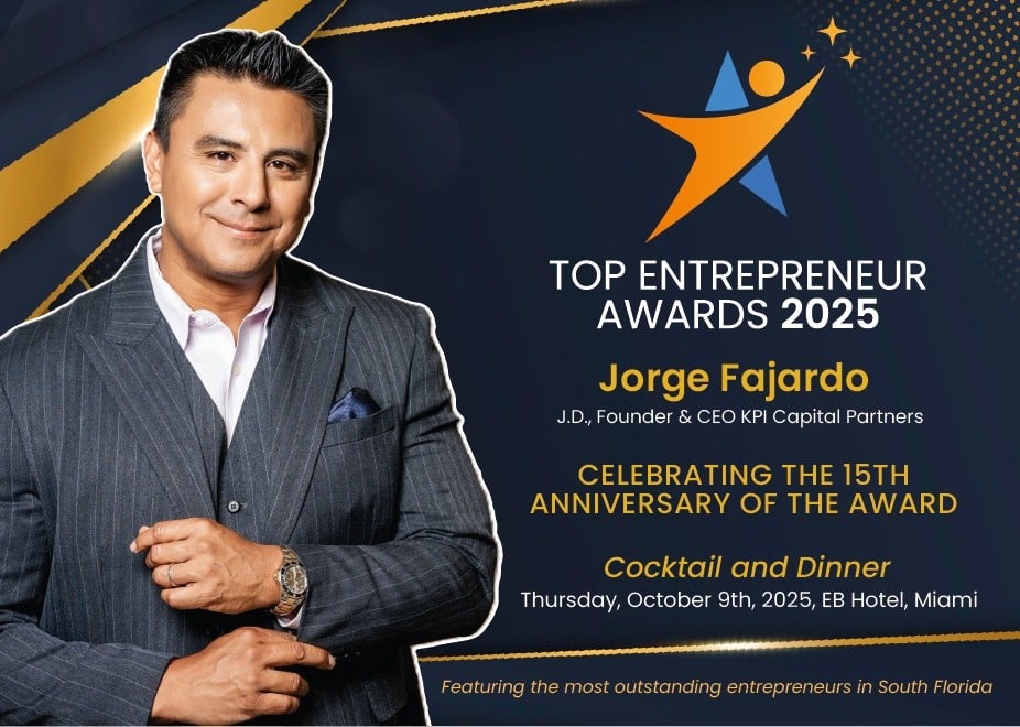 MIAMI, FL — October 6, 2025 — (NOTICIAS NEWSWIRE) — The businessman Jorge Fajardo, founder and president of KPI Capital Partners, will be recognized next Thursday, October 9 in Miami with the prestigious “Top Entrepreneur of USA” award, an award that highlights visionary leaders who have promoted economic growth, innovation and business development in the country. This recognition celebrates its trajectory as a promoter of strategic investment projects and creator of opportunities in various sectors, as well as its commitment to strengthening the Latin business ecosystem in the United States. His leadership, global vision and ability to transform ideas into successful businesses consolidate it as one of the most influential figures in the current corporate world.