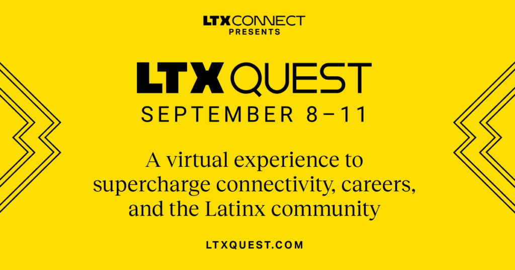 LTX Quest is a 4-day virtual experience on September 8-11th bringing together 4,000+ attendees from a cross section of sectors of culture and influence. LTX Quest is committed to remove barriers and create spaces for our community to dialogue, listen, and craft calls to actions to increase representation of Latinx across technology, entertainment, media, philanthropy, and social justice.